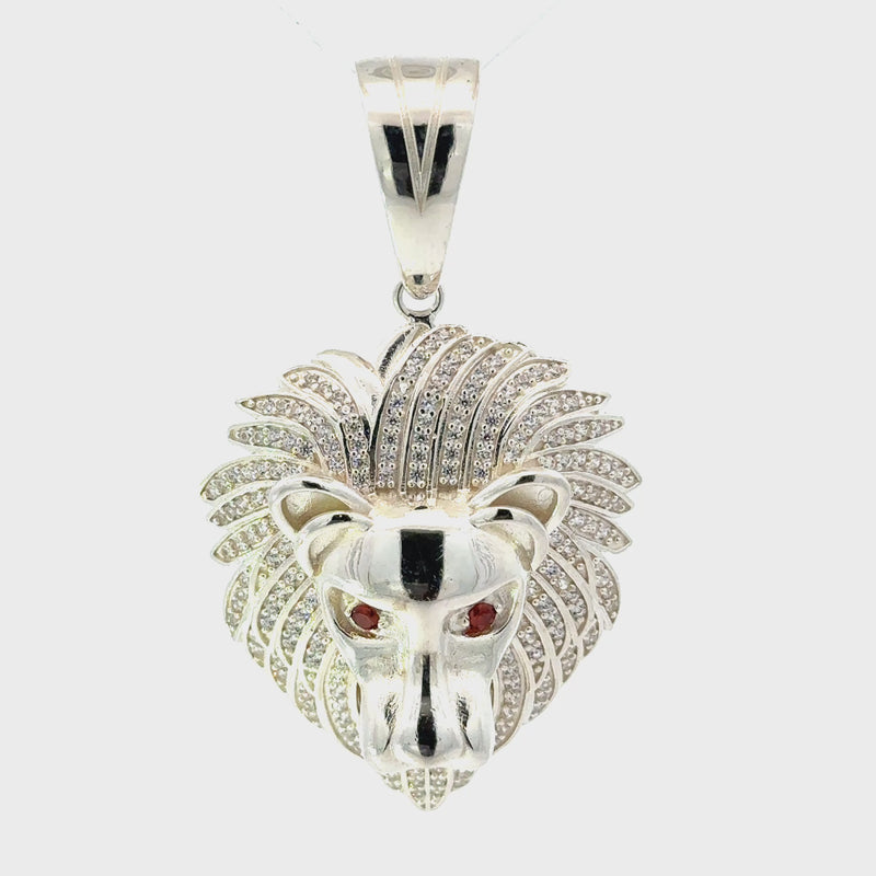 Löwenkopf-Anhänger aus 925 Silber mit Zirkonia-Augen – 6,5 cm