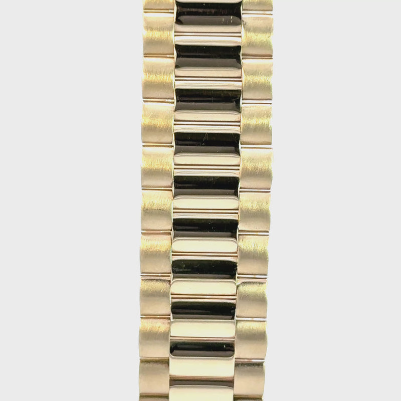 Das Präsidenten Armband ist ein exklusives Schmuckstück, das aus hochwertigem 14kt / 585 Gold gefertigt ist. Mit seinem eleganten und luxuriösen Design zieht dieses Armband alle Blicke auf sich. Es ist ein Symbol für Raffinesse, Stil und Erfolg. Das Präsidenten Armband eignet sich perfekt für besondere Anlässe und ist ein zeitloses Accessoire, das Ihnen einen Hauch von Luxus verleiht. Das Präsidenten Armband wurde aus 14kt / 585Gold gefertigt und ist ein Symbol für höchste Qualität und Wert. Es ist langlebig und bietet ein luxuriöses Design, das jeder Bewunderung wert ist.